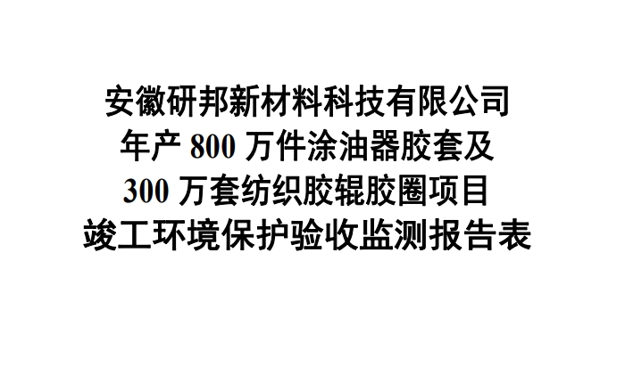 年产 800 万件涂油器胶套及300 万套纺织胶辊胶圈项目竣工环境保护验收