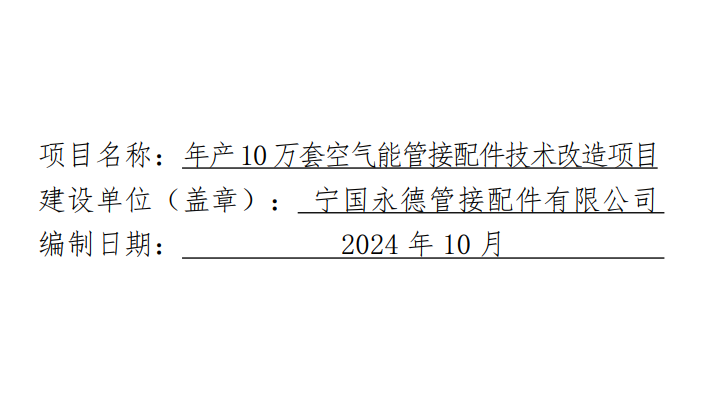 年产10万套空气能管接配件技术改造项目环评公示